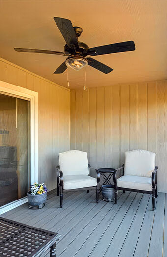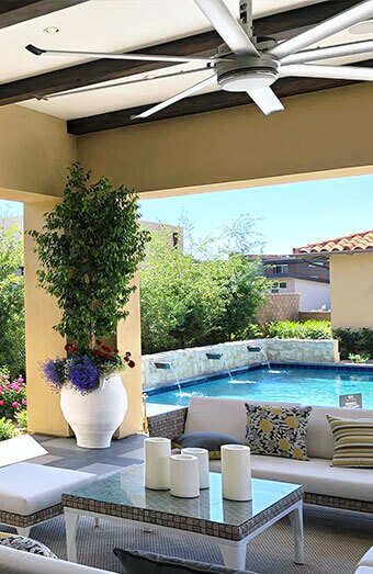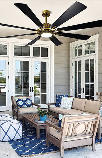 Installation of weather-rated ceiling fans designed for alfresco areas, patios, or balconies, perfect for coastal or high-moisture environments.
